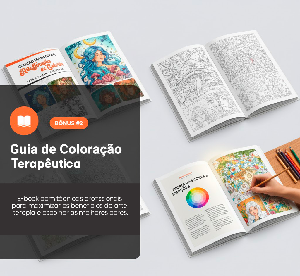 Estudos comprovam que colorir ativa as mesmas áreas do cérebro que a meditação.